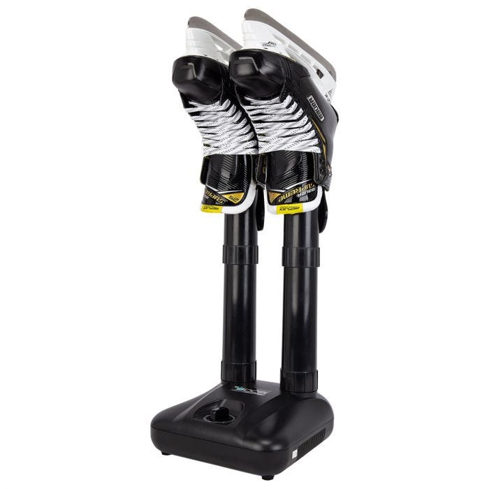 OdorCrusher’s Equipment station is intended to both heat and electrify ambient air for the use of drying and reducing odors in skates, boots, or cleats. OdorCrusher's "Ozone Technology" is powered through a standard household AC outlet, running in 30 minute to 3 hour cycle times. Includes height adjustable air pipes.